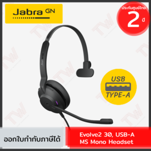 Jabra Evolve2 30, USB-A, MS Mono Headset หูฟังแบบข้างเดียว เชื่อมต่อ USB-A ของแท้ ประกันศูนย์ 2ปี