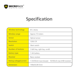 Micropack MP-716W Wireless Mouse เมาส์ ไร้สาย เสียงกดเบา (มีให้เลือก 3 สี) ของแท้ ประกันศูนย์ 1ปี