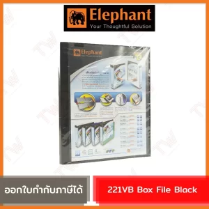 Elephant 221VB Box File Black แฟ้ม 2 ห่วงตราช้าง แฟ้มปกดูราพลาส แฟ้มปกพลาสติกแข็ง สีดำ ของแท้