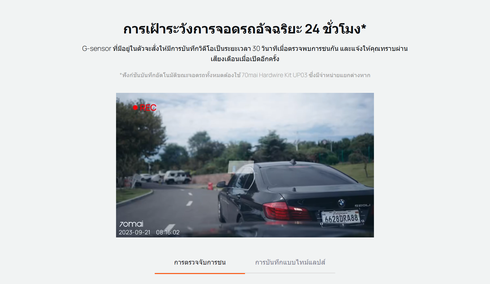 *ฟังก์ชันบันทึกอัตโนมัติขณะจอดรถทั้งหมดต้องใช้ 70mai Hardwire Kit UP03 ซึ่งมีจำหน่ายแยกต่างหาก