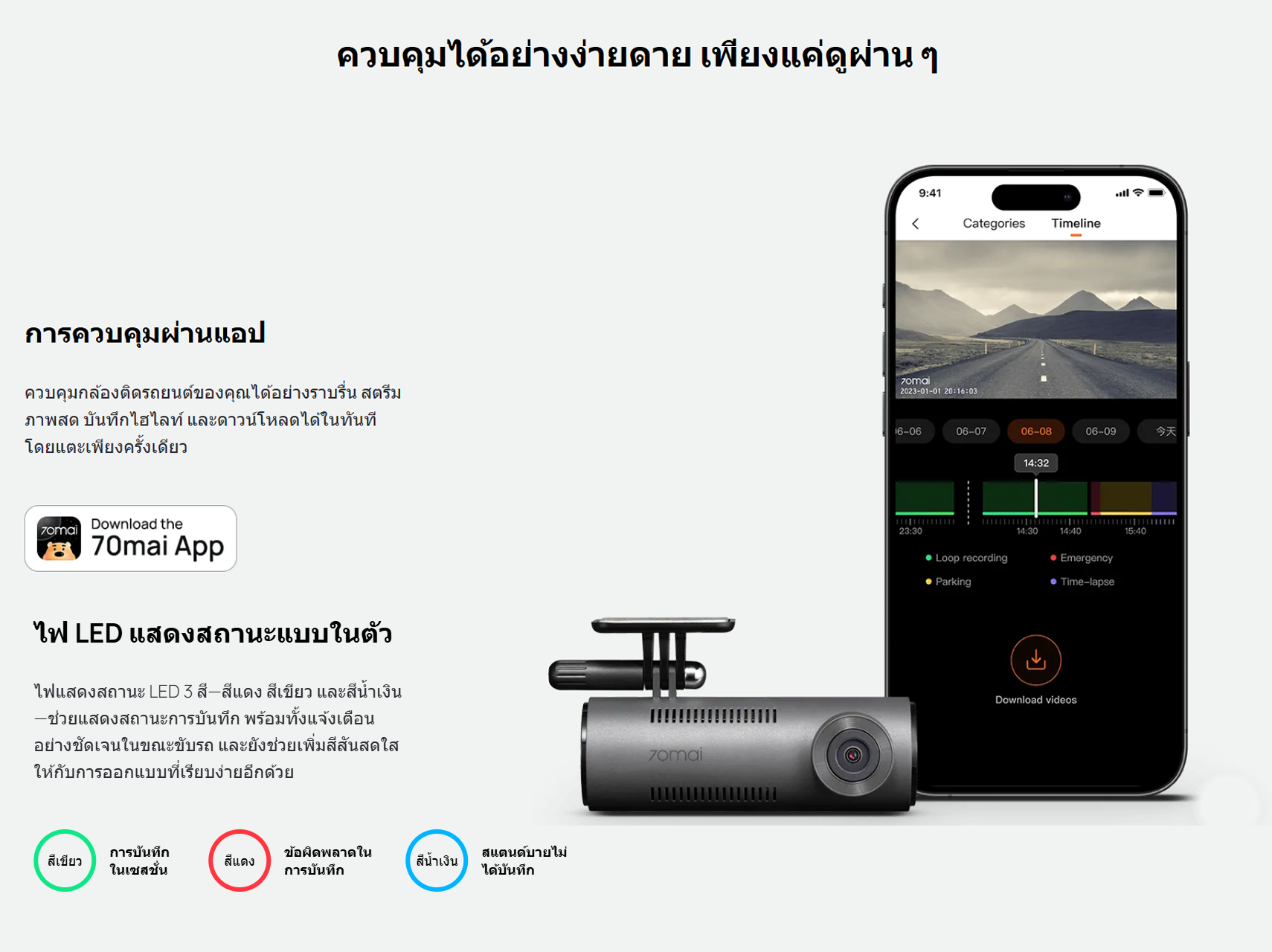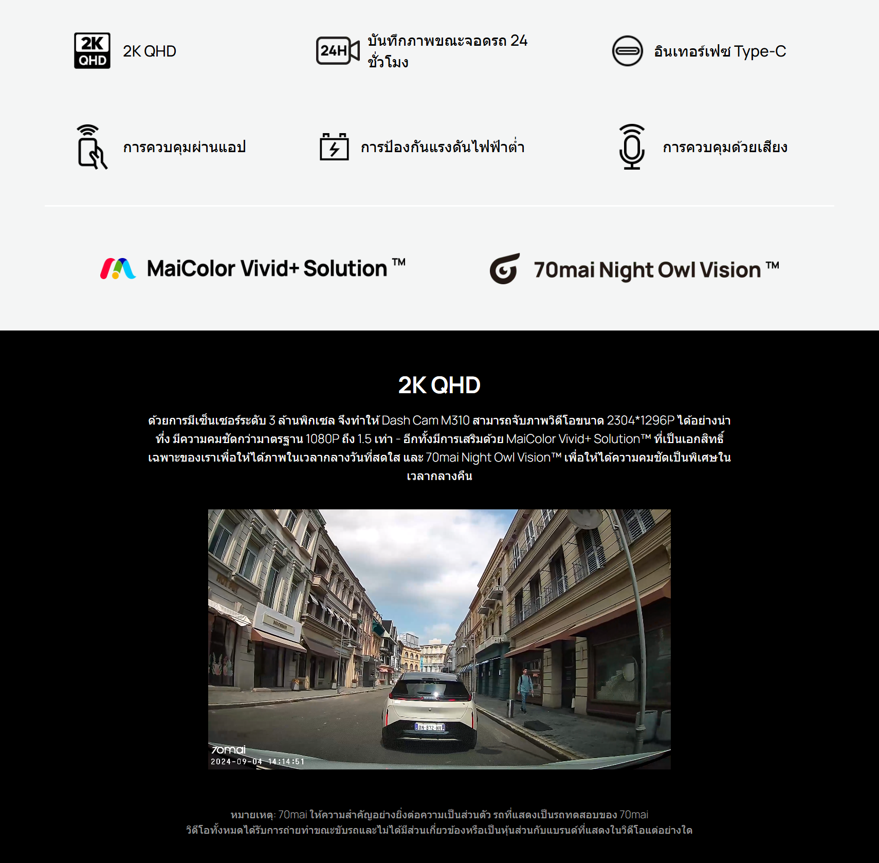 ✅ เชื่อมต่อผ่าน App 70Mai ตัวกล้องรองรับภาษาไทยและภาษาอังกฤษ