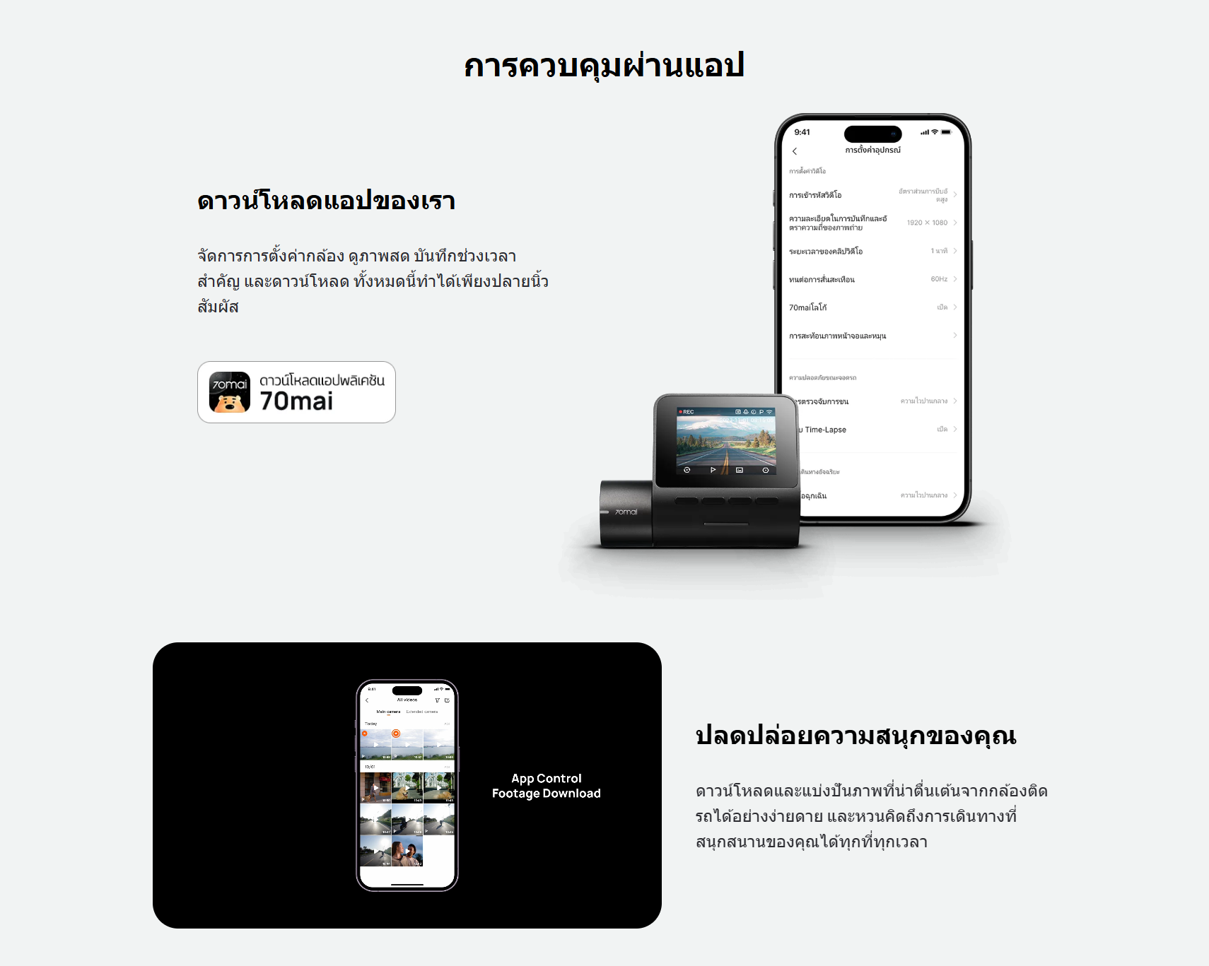 ✅ สามารถเชื่อมต่อกับ แอพพลิเคชั่น 70Mai ได้ รองรับการใช้งานภาษาไทย
