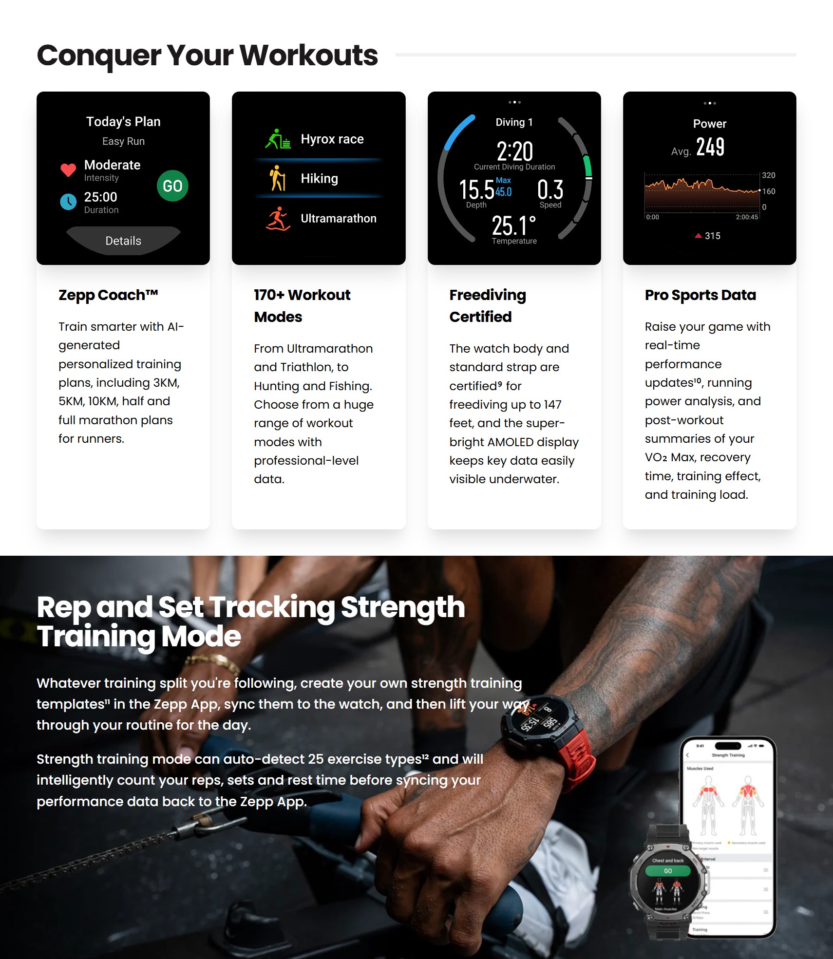 ❇️ โหมดกีฬามากกว่า 170 ประเภท: ครอบคลุมตั้งแต่กรีฑา ยิม ยันกีฬาเอ็กซ์ตรีม รวมถึงโหมด Free Diving (ดำน้ำตัวเปล่า) ได้ลึกถึง 45 เมตร