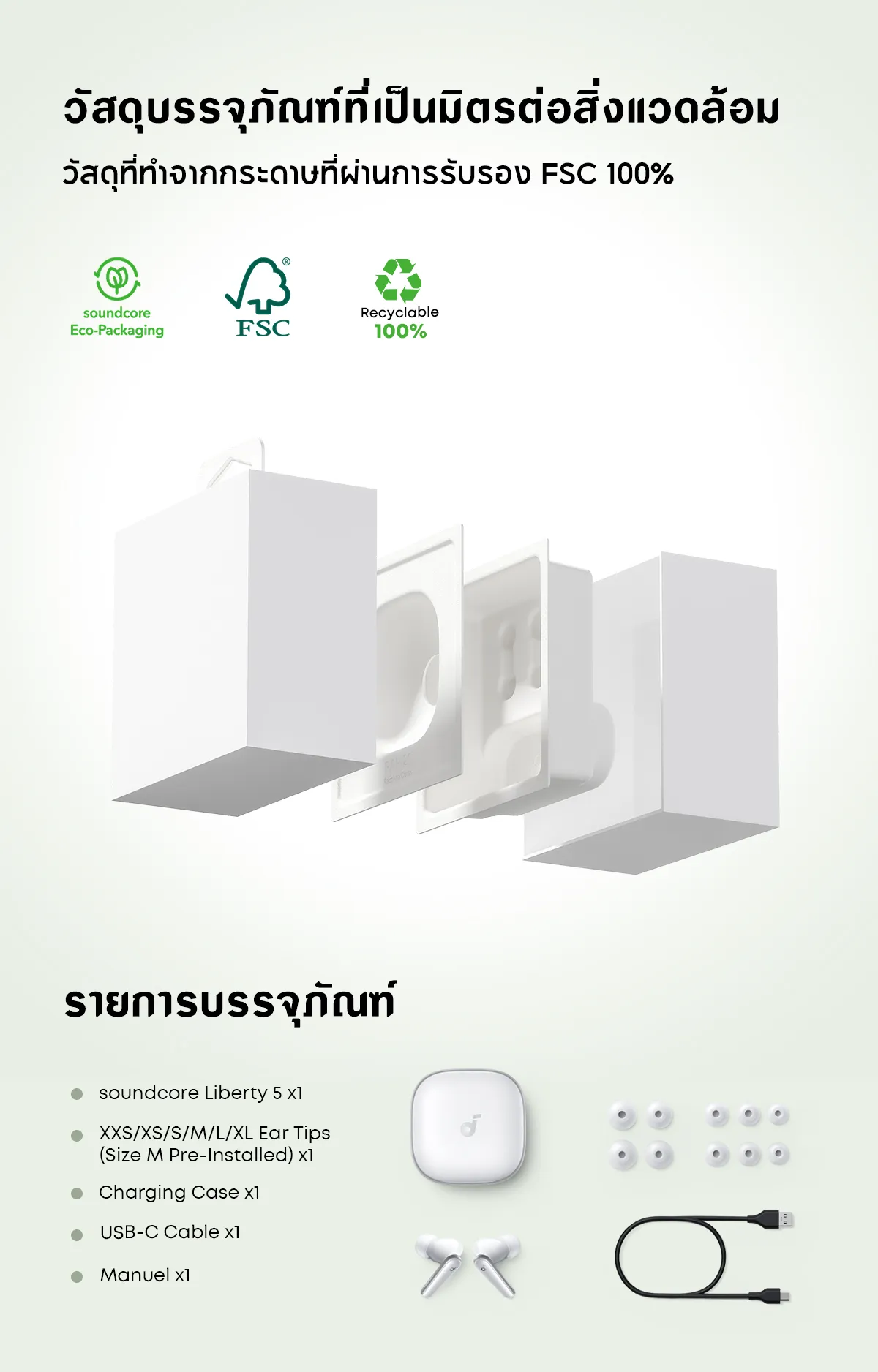 Anker Soundcore Liberty 5 ANC TWS Earbuds หูฟังไร้สาย ของแท้ ประกันศูนย์ 18เดือน