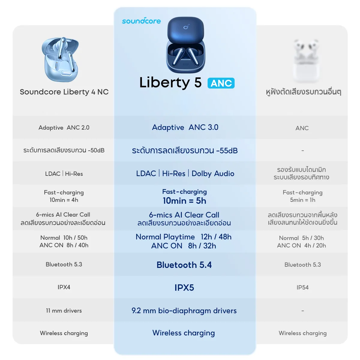 🔶Anker Soundcore Liberty 5 ANC TWS Earbuds หูฟังไร้สาย ของแท้ ประกันศูนย์ 18เดือน🔶