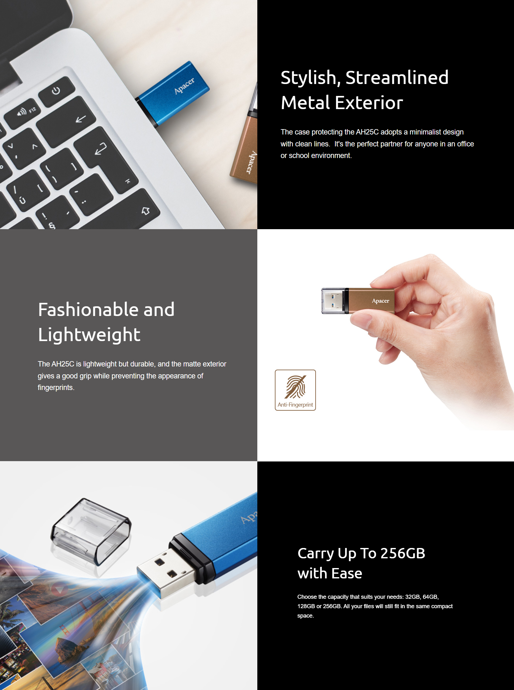 🔶Apacer AH25C [32GB/64GB] USB 3.1/3.2 Handy Drive แฟลชไดร์ฟ [Blue, Bronze] ของแท้ ประกันศูนย์ 5ปี🔶