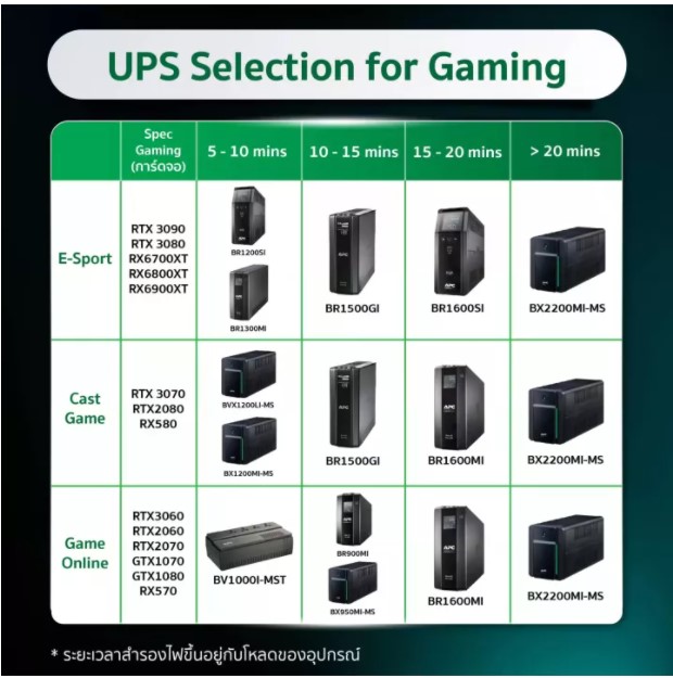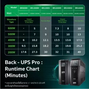 - ระยะเวลาสำรองไฟ (Runtime Estimates) ที่ 120 วัตต์ ประมาณ 1 ชั่วโมง 6 นาที