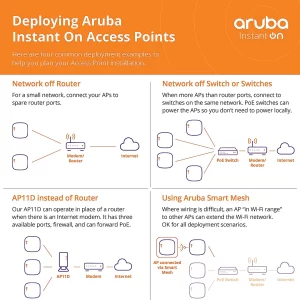 ตั้งค่าผ่าน mobile app: Instant On mobile application(Android & iOS) โดยสามารถจัดการ AP ได้สูงสุด 25AP ต่อ 1 Site ซึ่งใน 1Account รองรับได้ 3 Site
