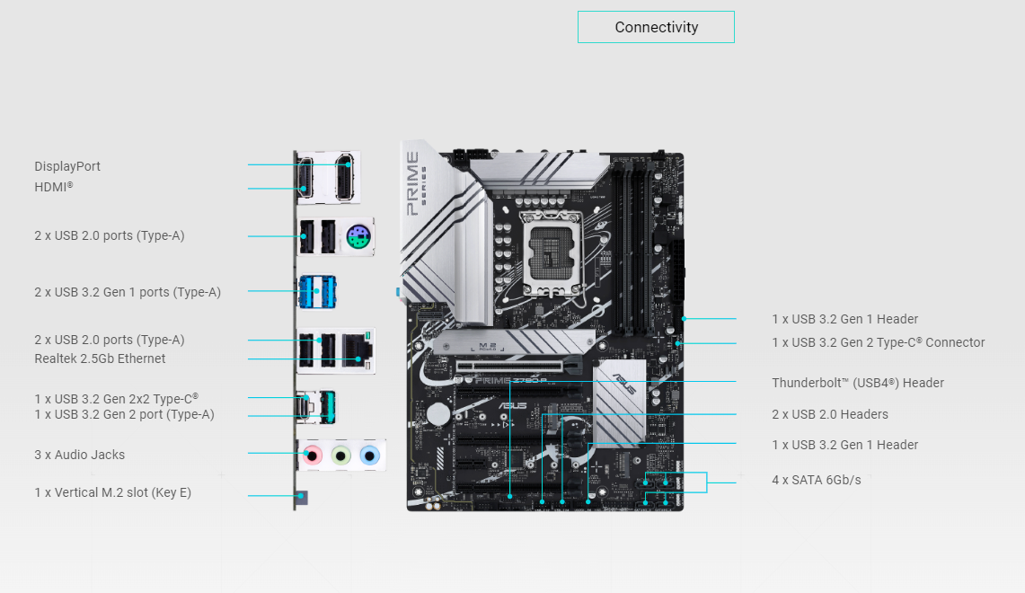 ● รองรับซีพียู: Socket LGA1700 for 13th & 12th Gen Intel Processors