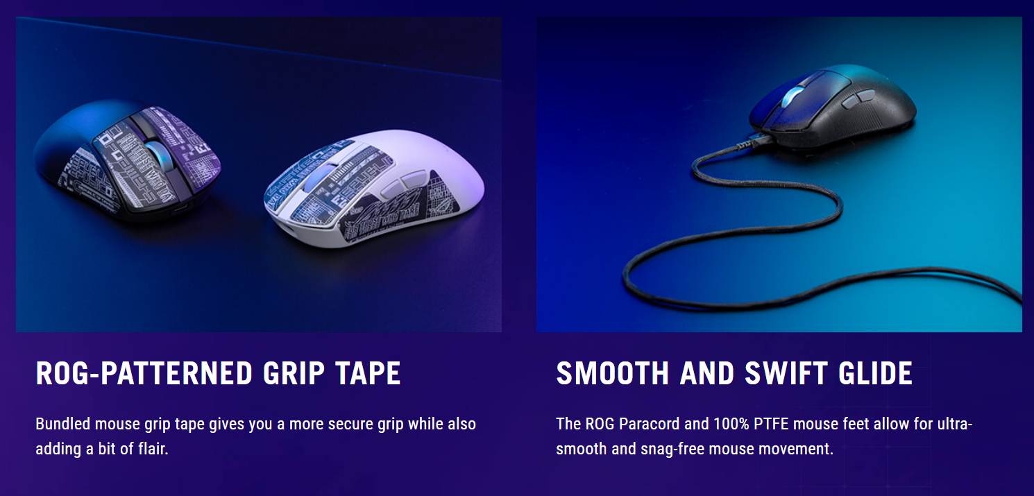 ❇️ ROG Paracord และฐานรองเมาส์ PTFE 100%: วัสดุคุณภาพสูงช่วยให้การเคลื่อนไหวลื่นไหลและรวดเร็ว