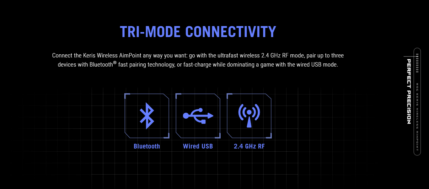 ✅ การเชื่อมต่อสามโหมด: ความยืดหยุ่นในการเชื่อมต่อด้วย USB แบบมีสาย, การเชื่อมต่อ 2.4 GHz RF ที่มีความหน่วงต่ำ และโหมด Bluetooth®