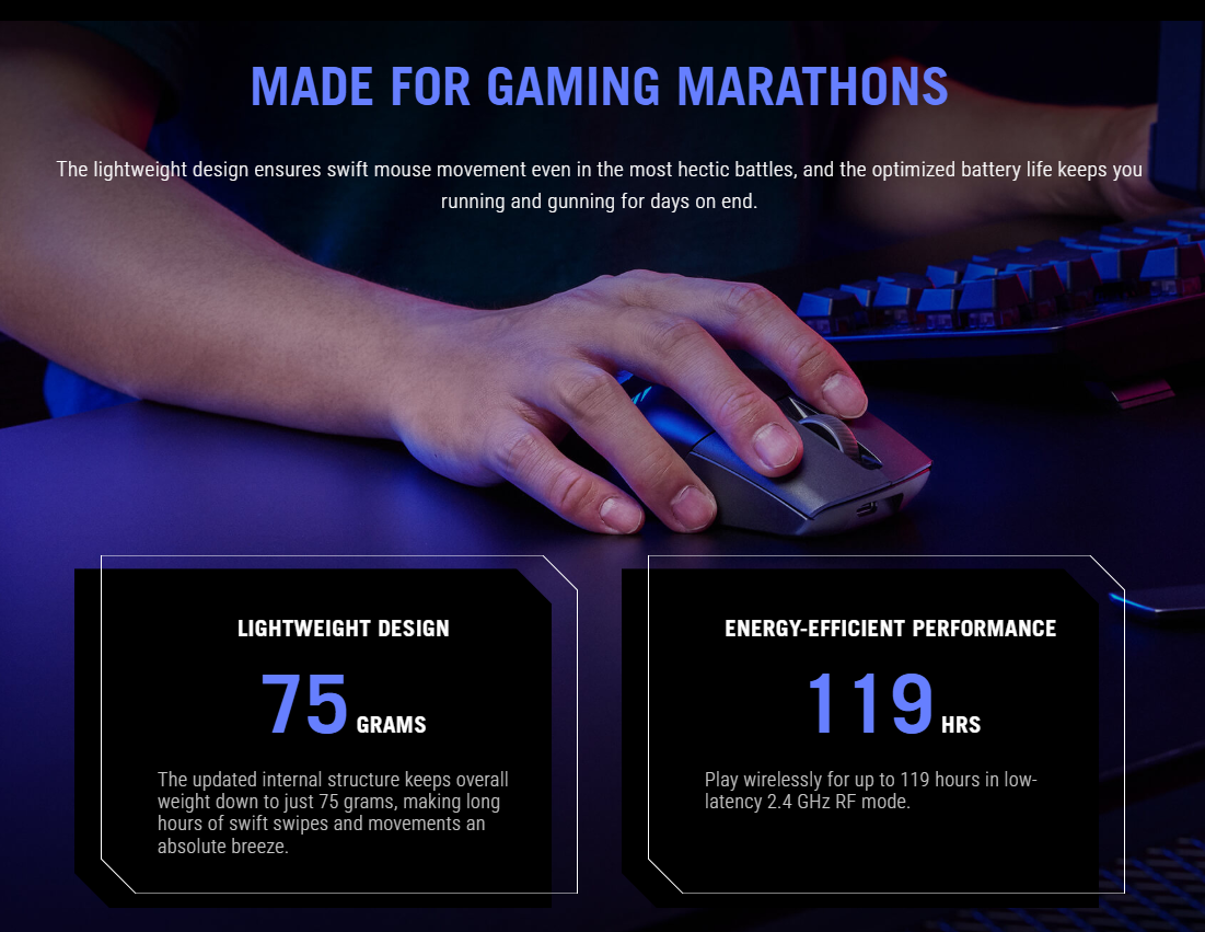✅ การตอบสนองแบบไร้สายที่รวดเร็วพิเศษ: ประสิทธิภาพไร้สายที่ลดความล่าช้าลงและเพิ่มความแม่นยำของเคอร์เซอร์