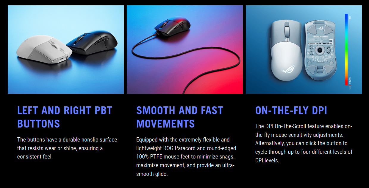 ✅ สาย ROG Paracord และฐานเมาส์ PTFE 100%: วัสดุคุณภาพช่วยให้เคลื่อนไหวได้อย่างลื่นไหลและรวดเร็ว