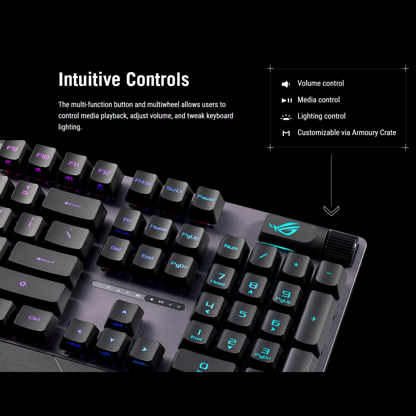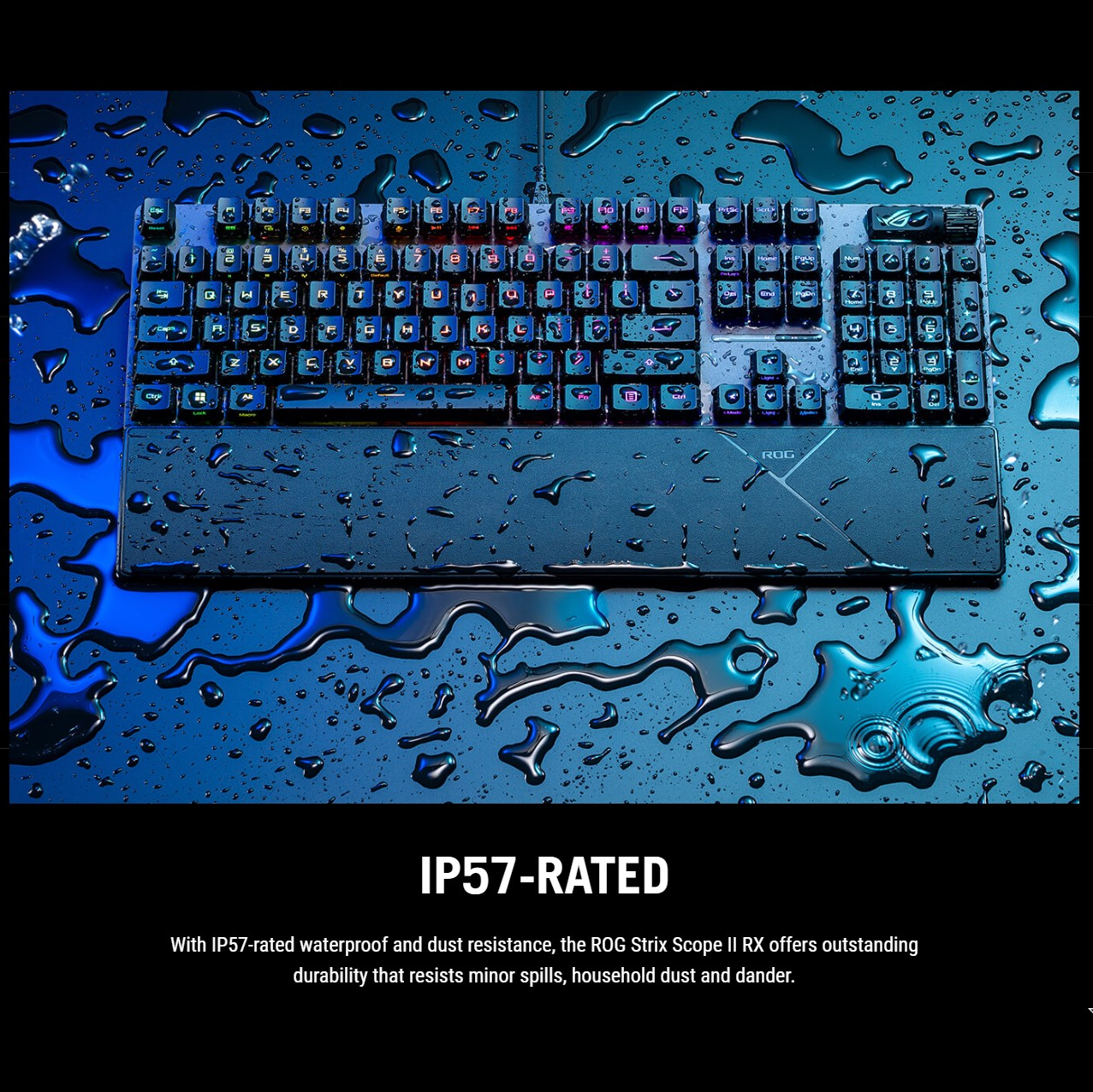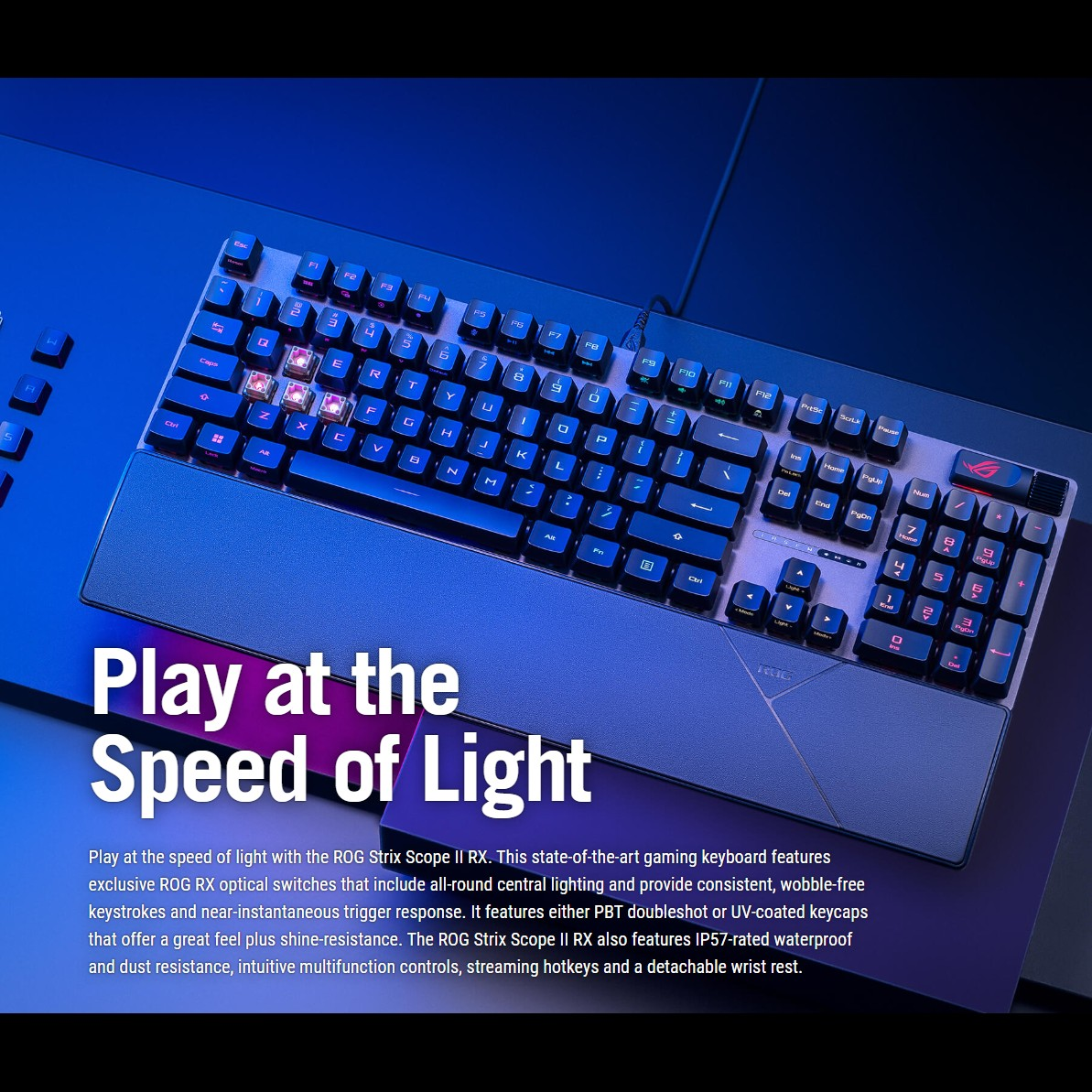 ❇️ คีย์แคป ROG PBT แบบ Doubleshot ที่ทนทาน หรือคีย์แคป ABS เคลือบ UV ให้สัมผัสระดับพรีเมียมและป้องกันการเกิดรอยเงา*
