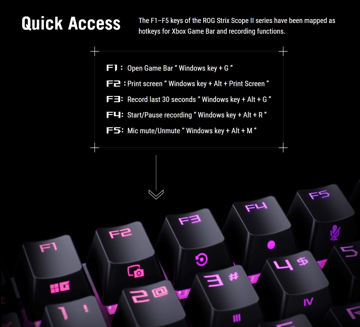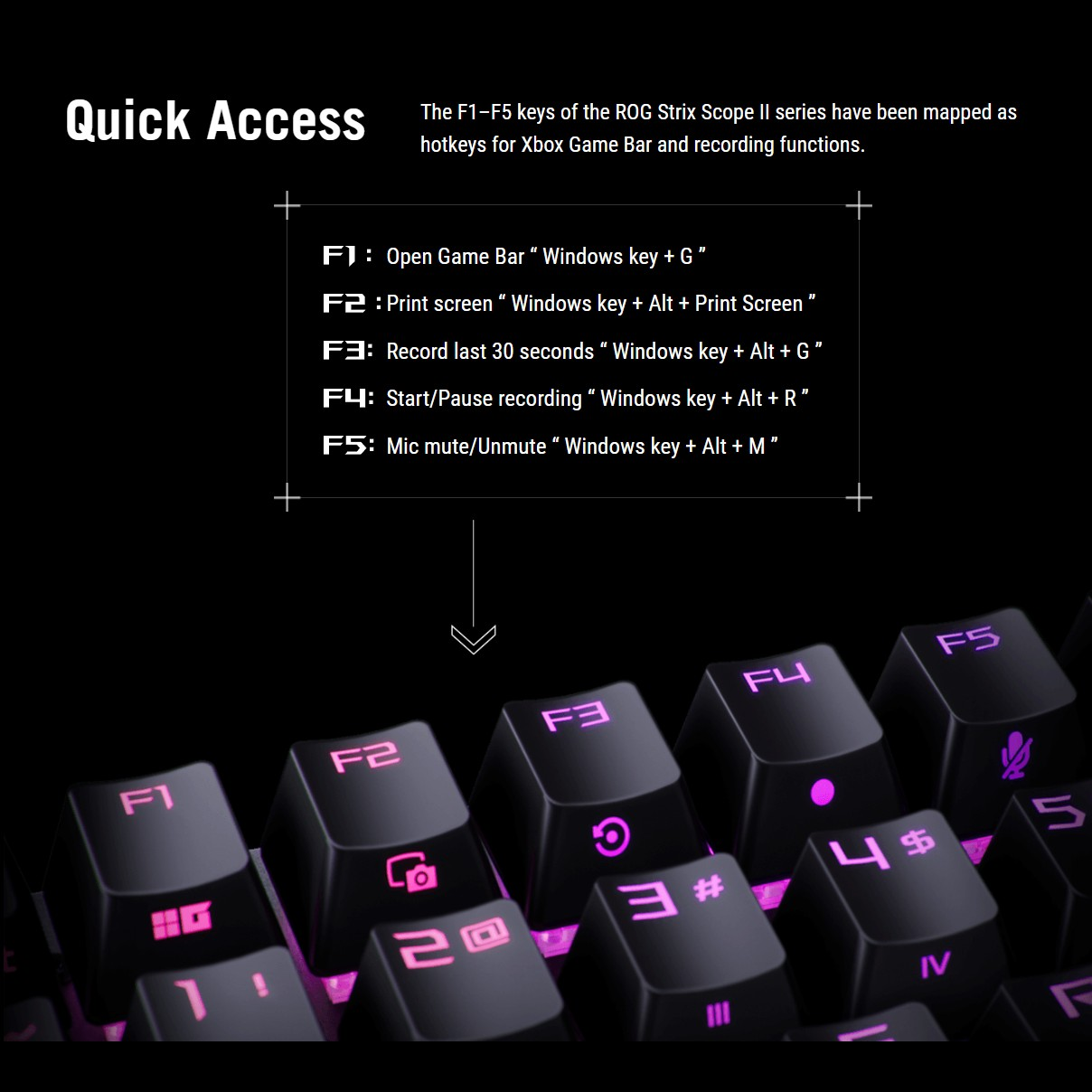 ❇️ ปุ่มลัด (Hotkeys): ปุ่ม F1–F5 ถูกตั้งค่าล่วงหน้าให้เป็นปุ่มลัดสำหรับ Xbox Game Bar และการบันทึกหน้าจอ