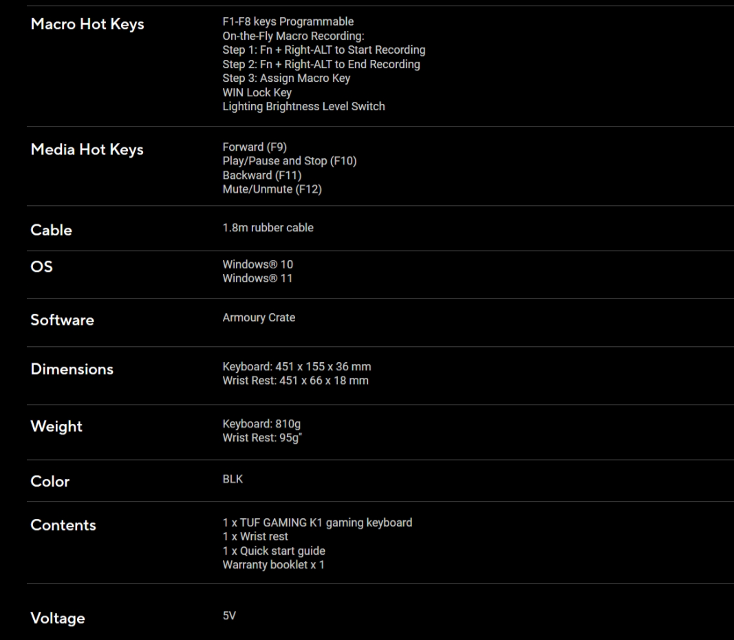 🔶Asus TUF Gaming K1 Wired Gaming Keyboard คีย์บอร์ดเกมมิ่ง มีสาย ของแท้ ประกันศูนย์ 2ปี🔶