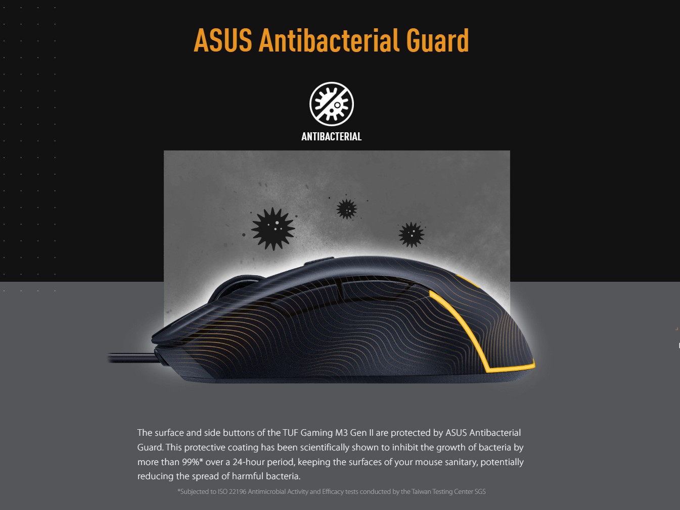 ❇️ ASUS Antibacterial Guard: ยับยั้งการเจริญเติบโตของแบคทีเรีย เพื่อให้พื้นผิวและปุ่มของเมาส์สะอาดถูกสุขลักษณะ
