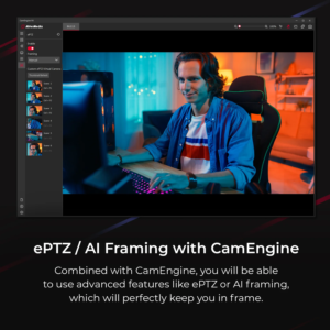 When combined with the CamEngine app, you can use advanced functions such as ePTZ and AI Framing, which will automatically frame a group or person from your video sources.