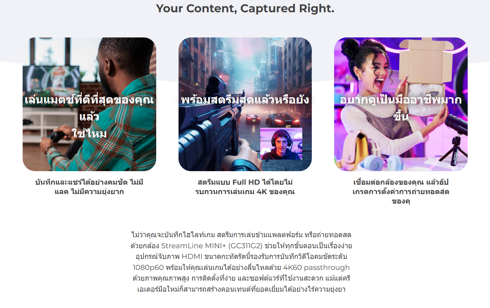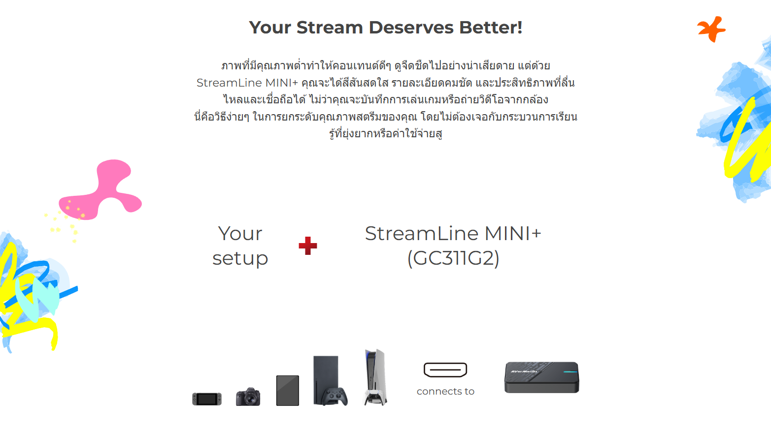✅ ตัวช่วยสำหรับสตรีมเกมส์จากเกมส์คอนโซล์ได้หลากหลายผ่านสาย HDMI (ใช้ร่วมกับโปรแกรม Avermedia Streaming Center)