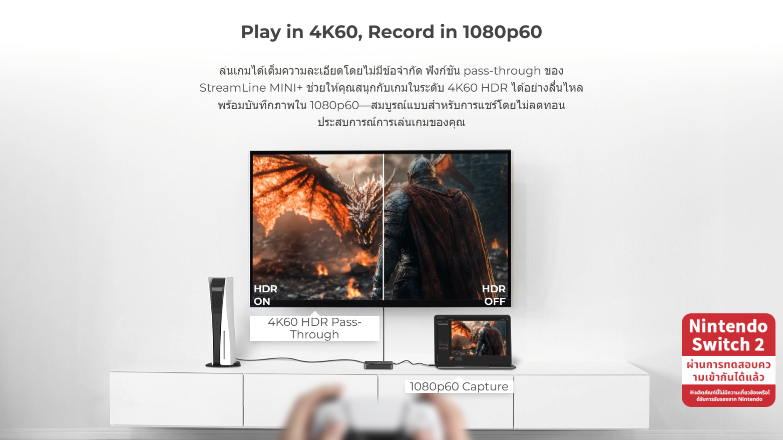 ✅ ความละเอียดวิดิโอสูงสุดสำหรับ Pass-Through: 2160p60 HDR