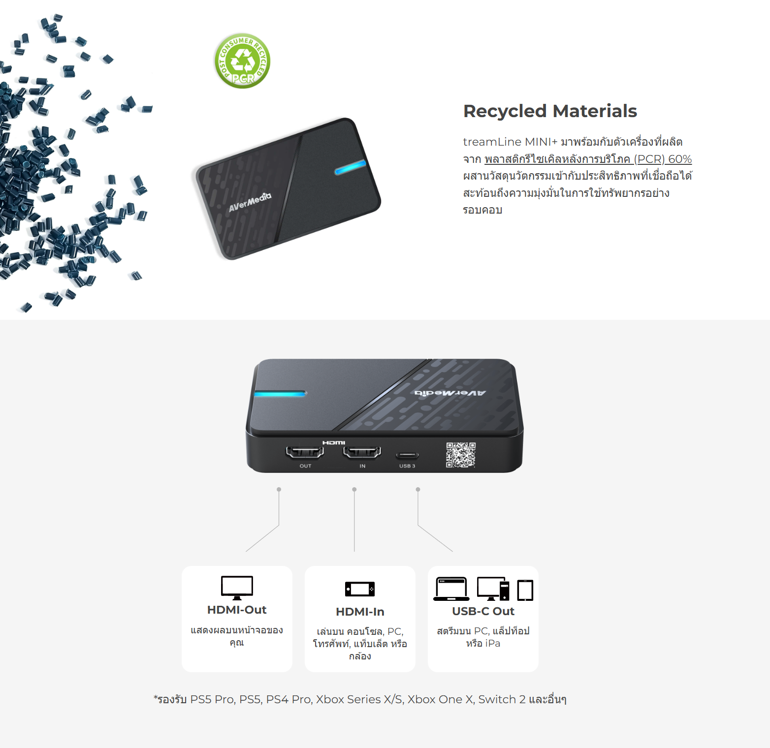 ✅ ตัวเครื่องที่ผลิตจาก พลาสติกรีไซเคิลหลังการบริโภค (PCR) 60%