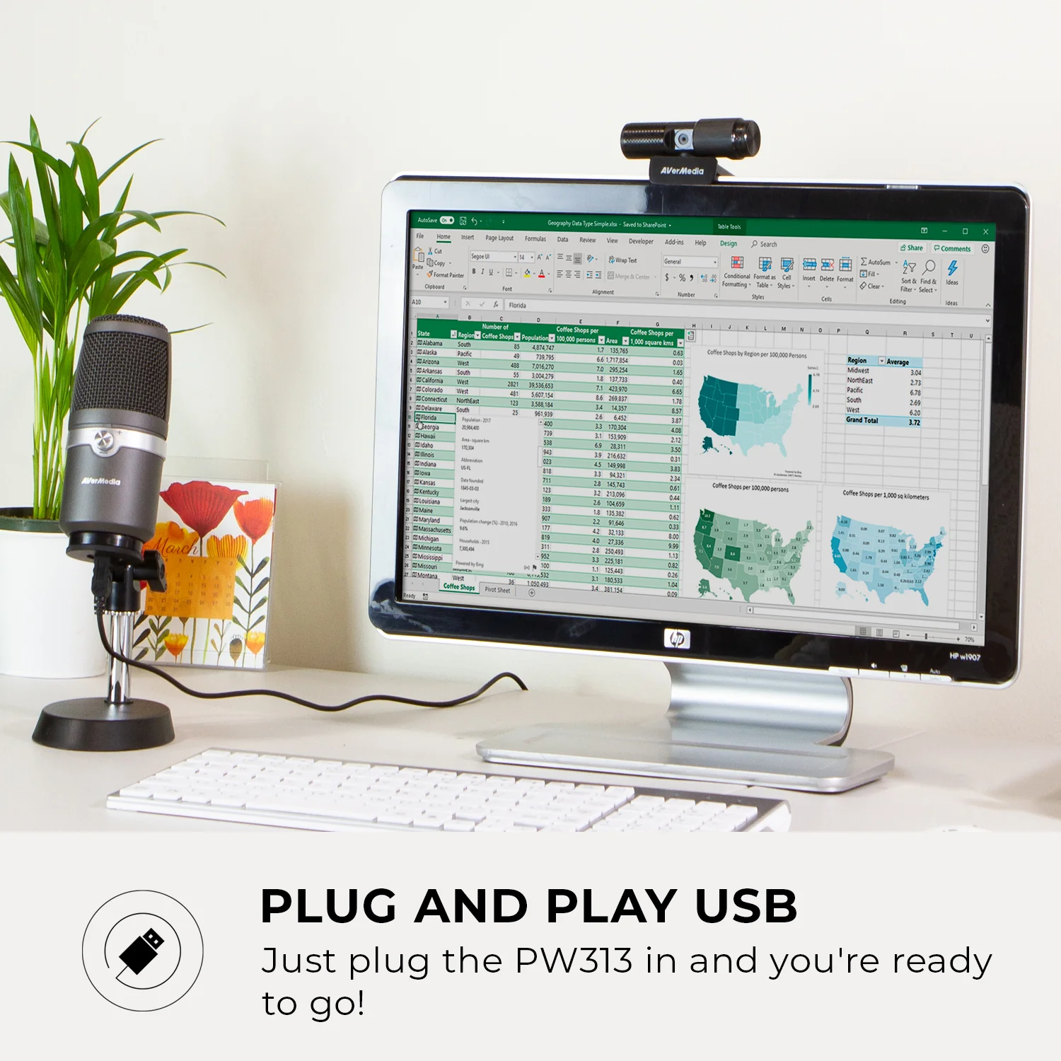 Live Streamer CAM 313 (PW313) เป็นเว็บแคม USB แบบ Plug and Play ที่ใช้บันทึกวิดีโอ 1080p30 สำหรับพอดแคสต์ สตรีมมิ่ง และการเล่นเกม PW313 มาพร้อมกับไมโครโฟน 2 ตัว (โมโน)