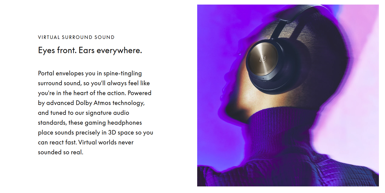 ✅ Beoplay Portal โอบล้อมคุณด้วยเสียงเซอร์ราวด์รอบทิศทางให้คุณได้รู้สึกเหมือนอยู่ในนั้นจริงๆ และเทคโนโลยี Dolby Atmos ขั้นสูง