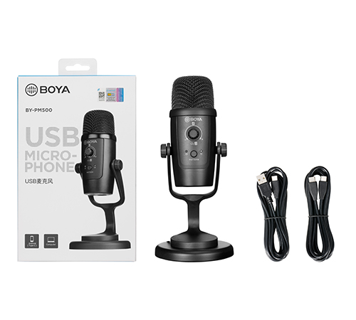 ไมโครโฟนคอนเดนเซอร์ USB BOYA BY-PM500 มีรูปแบบการรับสัญญาณแบบคาร์ดิออยด์และรอบทิศทางพร้อมอัตราการสุ่มตัวอย่างความละเอียดสูง 24 บิต / 48kHz รองรับการใช้งานกับระบบ iOS/Android, Mac/Windows
