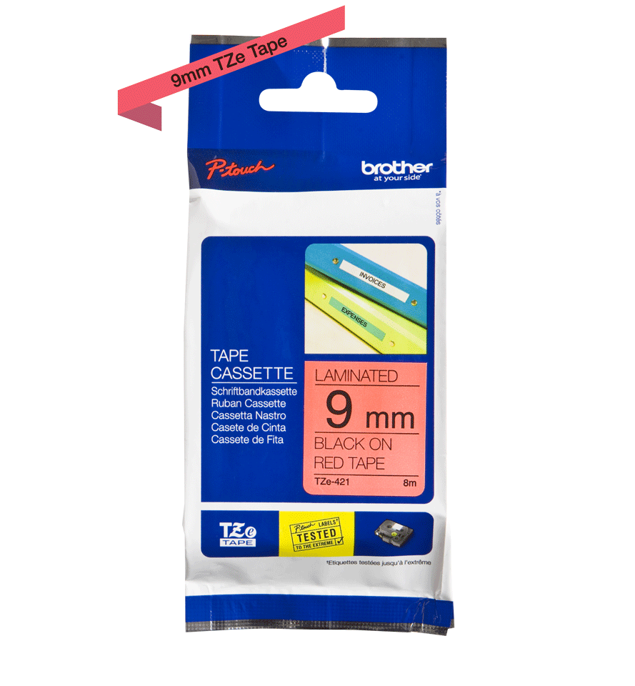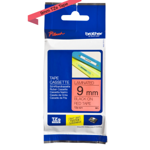 Genuine Brother TZe-421 Labelling Tape Cassette – Black on Red, 9mm wide