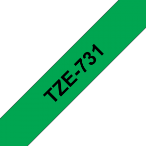Genuine Brother TZe-731 Labelling Tape Cassette – Black on Green, 12mm wide
