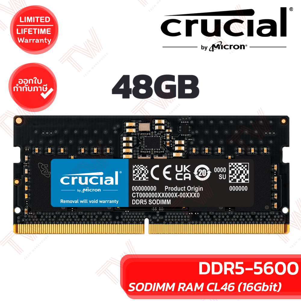 ✨✨Crucial 48GB DDR5-5600 SODIMM RAM CL46 (16Gbit) แรมสำหรับโน๊ตบุ๊ค ของแท้✨✨