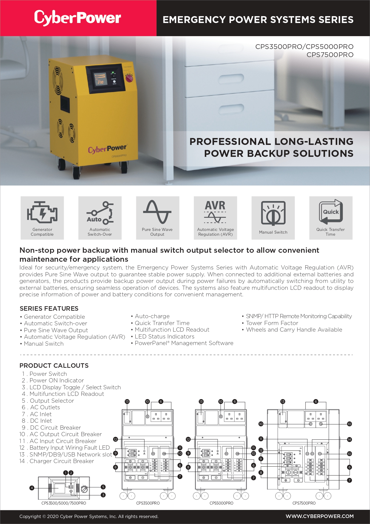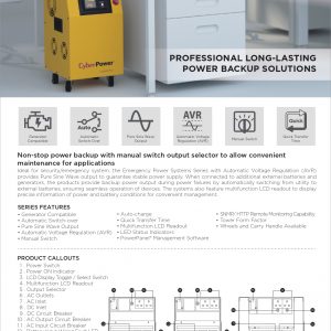 - CyberPower Emergency Power Systems เครื่องสำรองไฟฟ้าฉุกเฉิน เหมาะกับการที่ต้อง Backup time มากกว่า 1 ชั่วโมง
