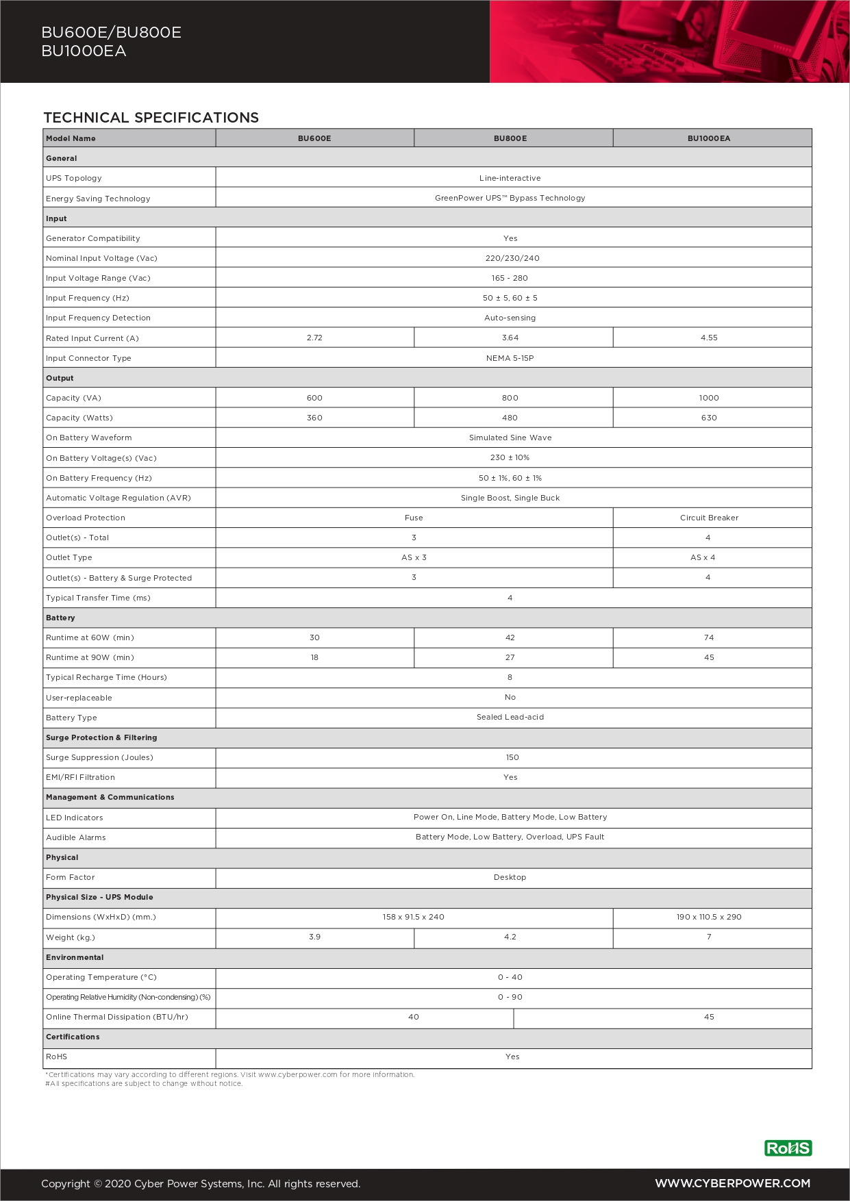 - CyberPower BU Series เครื่องสำรองไฟขนาดเล็ก เหมาะกับการใช้งานภายในบ้าน หรือสำนักงานทั่วไป