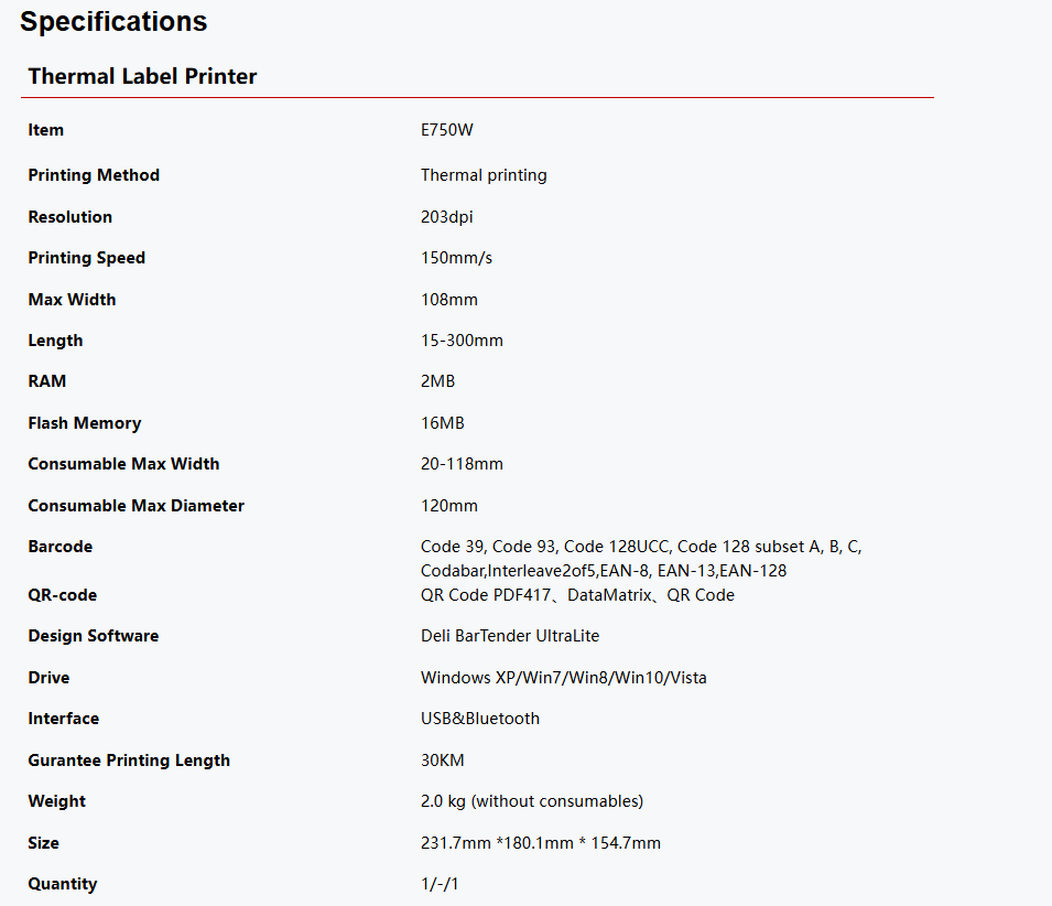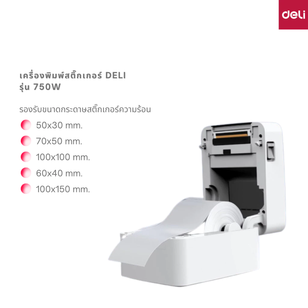 ✨✨Deli 750W Thermal Label Printer เครื่องพิมพ์สติ๊กเกอร์ ฉลากสินค้า บาร์โค้ด ใช้ความร้อนในการพิมพ์ ของแท้ ประกันศูนย์ 1ปี✨✨