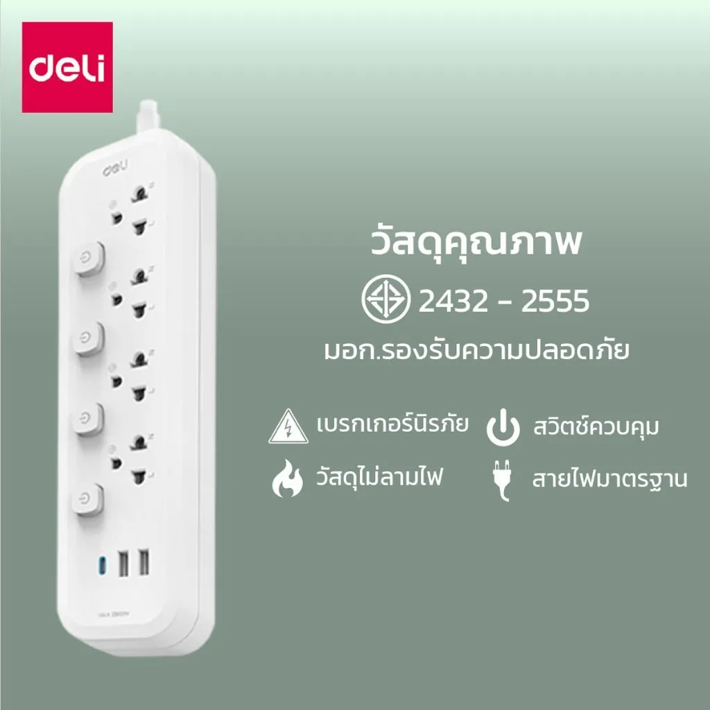 ⭐Power Bar ทำจากวัสดุ PP คุณภาพสูง ทนความได้ดี และเป็นพลาสติกแบบพิเศษไม่ติดไฟ