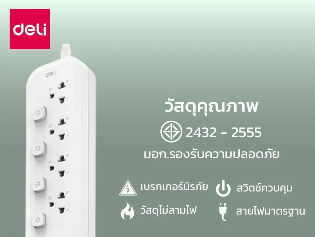 ⭐มีปุ่มสวิตซ์ทุกช่อป้องกันไฟฟ้ารั่วไหล เพิ่มความปลอดภัยในการใช้งาน