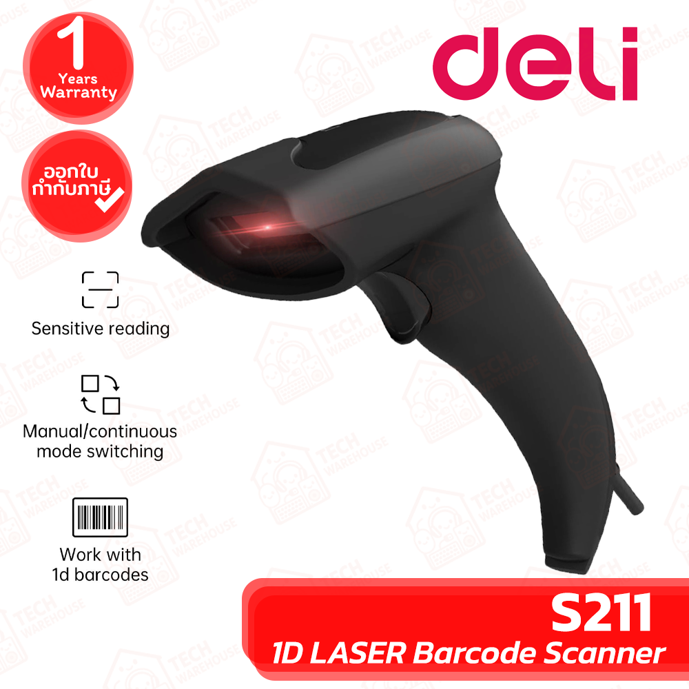✨✨Deli S211 1D LASER Barcode Scanner เครื่องสแกนบาร์โค้ดแบบมีสาย ของแท้ ประกันศูนย์ 1ปี✨✨