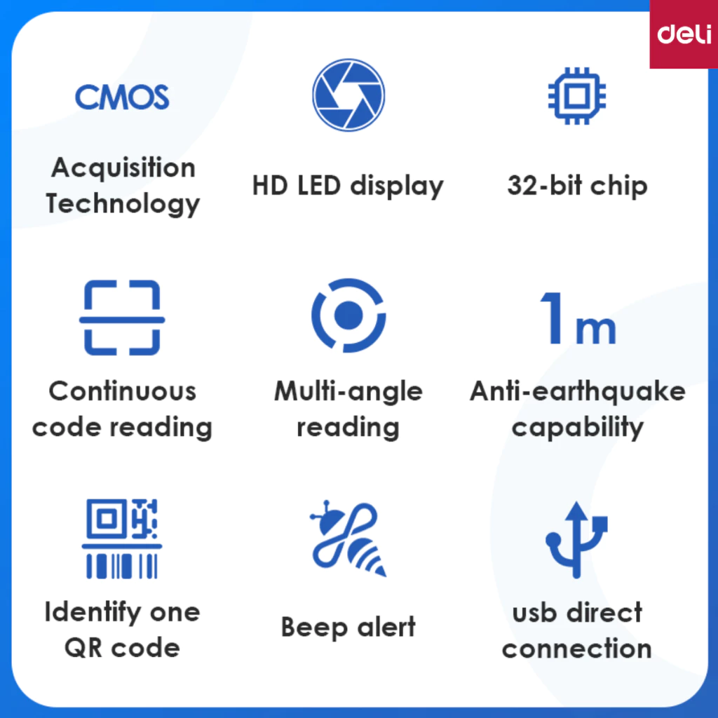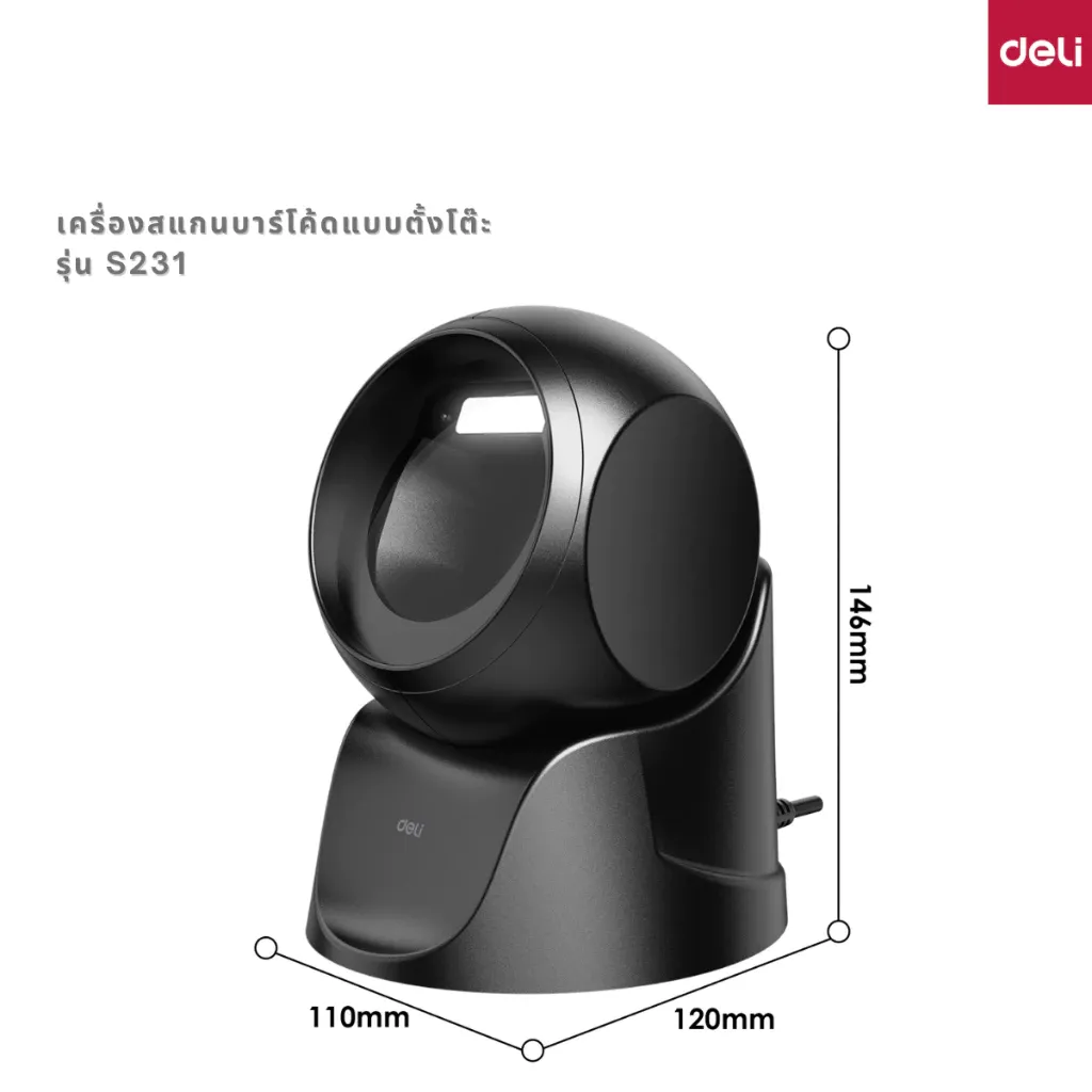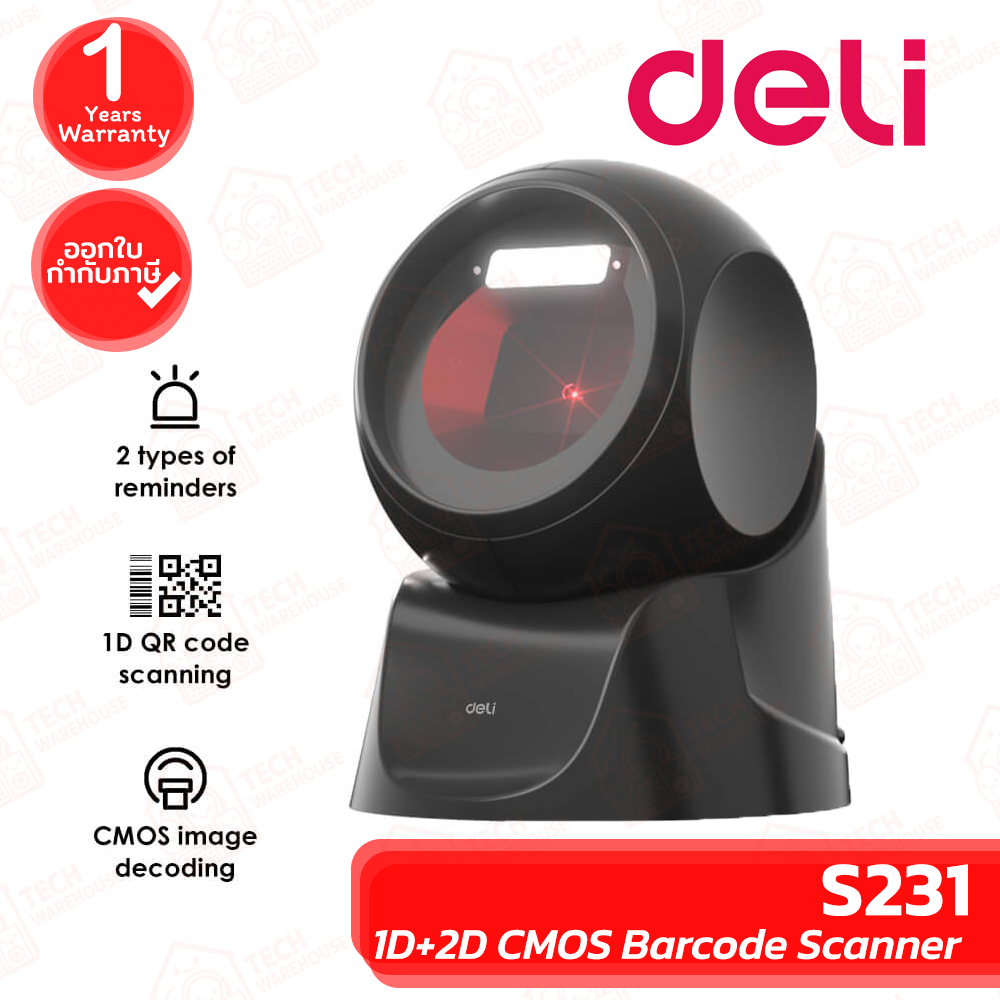 ✨✨Deli S231 1D+2D CMOS Barcode Scanner เครื่องสแกนบาร์โค้ดแบบตั้งโต๊ะ ของแท้ ประกันศูนย์ 1ปี✨✨