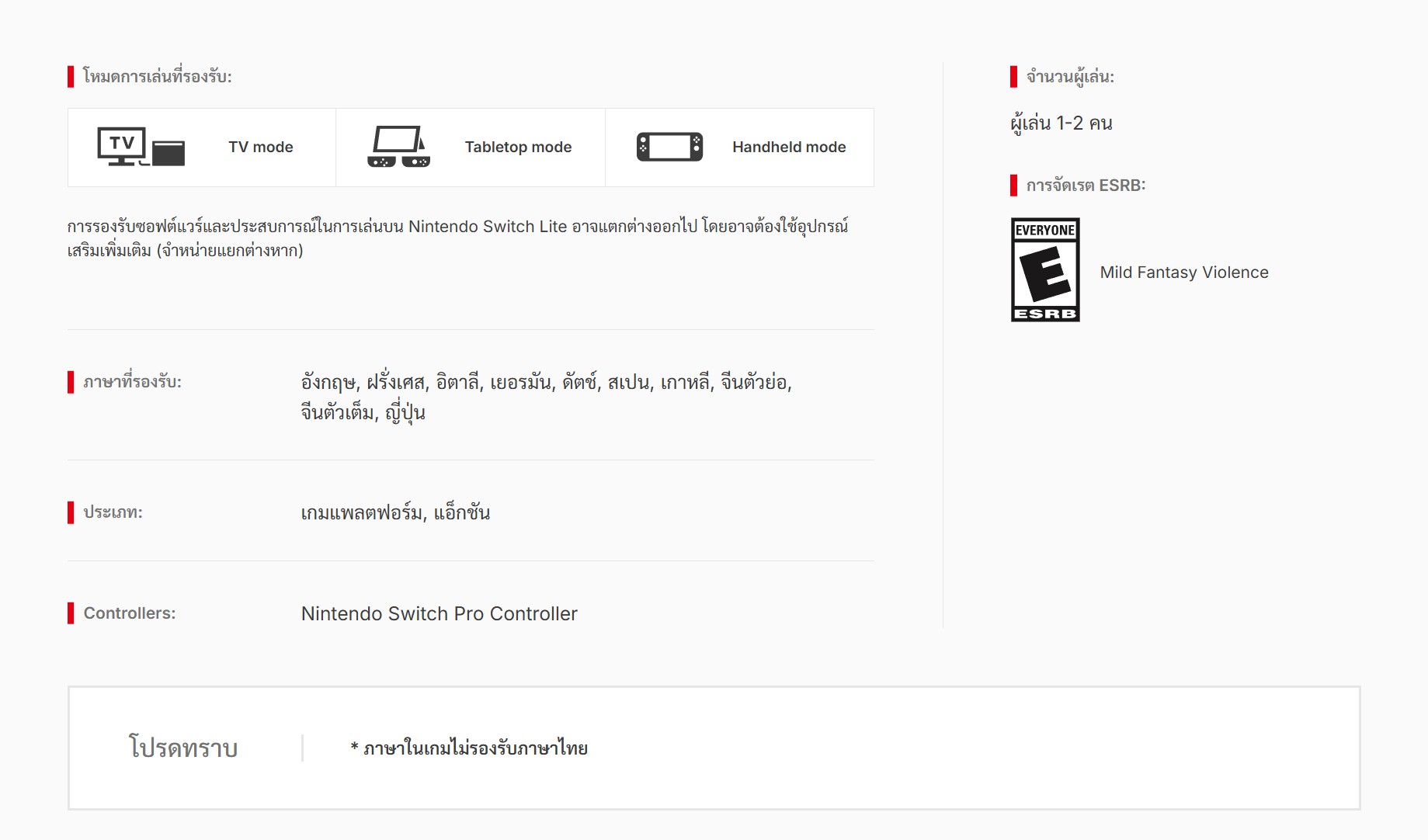 ✅ *ภาษาในเกมไม่รองรับภาษาไทย