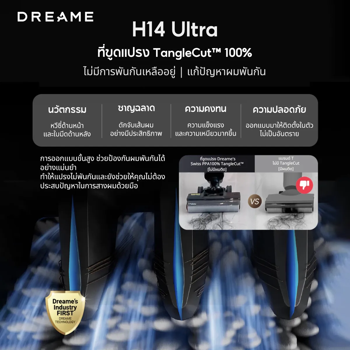 ✅ ที่ขูดแปรง TangleCut™ (ตัดเส้นผม 100% / ป้องกันการพันกัน) *ที่แรกในอุตสาหกรรม