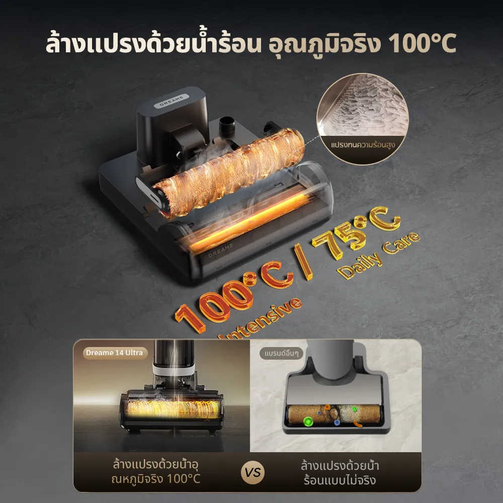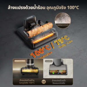 ✅ แปรงถูพื้นด้วยน้ำร้อนสูงสุด 100 องศา และเป่าแห้งด้วยลมร้อนสูงสุด 75 องศา ที่จะทำให้ผ้าแห้งภายใน 5 นาที