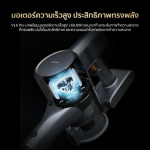 V16 Pro มาพร้อมมอเตอร์ความเร็วสูง 160,000 รอบ/นาที ยกระดับการทำความสะอาดที่ทรงพลัง มั่นใจในประสิทธิภาพและความแม่นยำในการจัดการทำความสะอาด