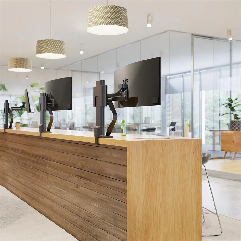 Standard 2-piece desk clamp attaches to surface edge up to 2.55″ (65 mm) thick