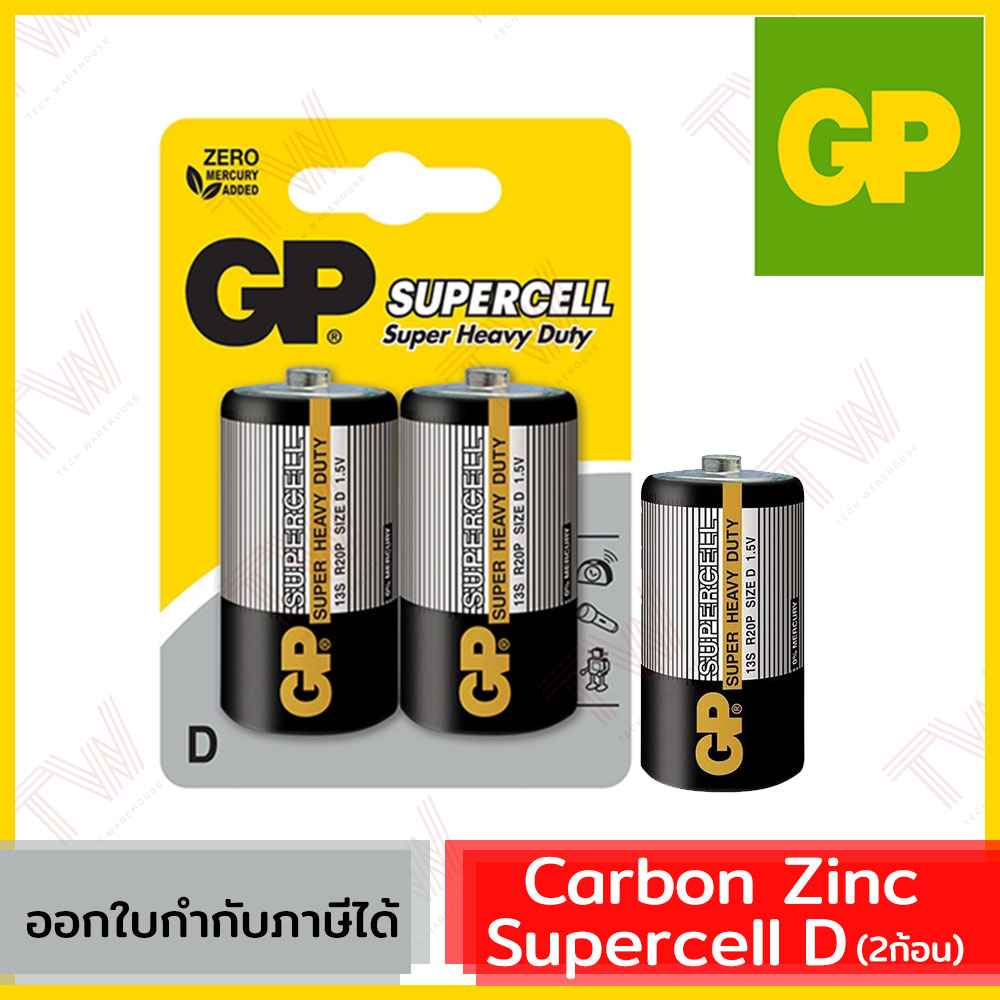 GP Carbon Zinc Supercell D ถ่านคาร์บอนด์ซิงค์ ของแท้ (2ก้อน)