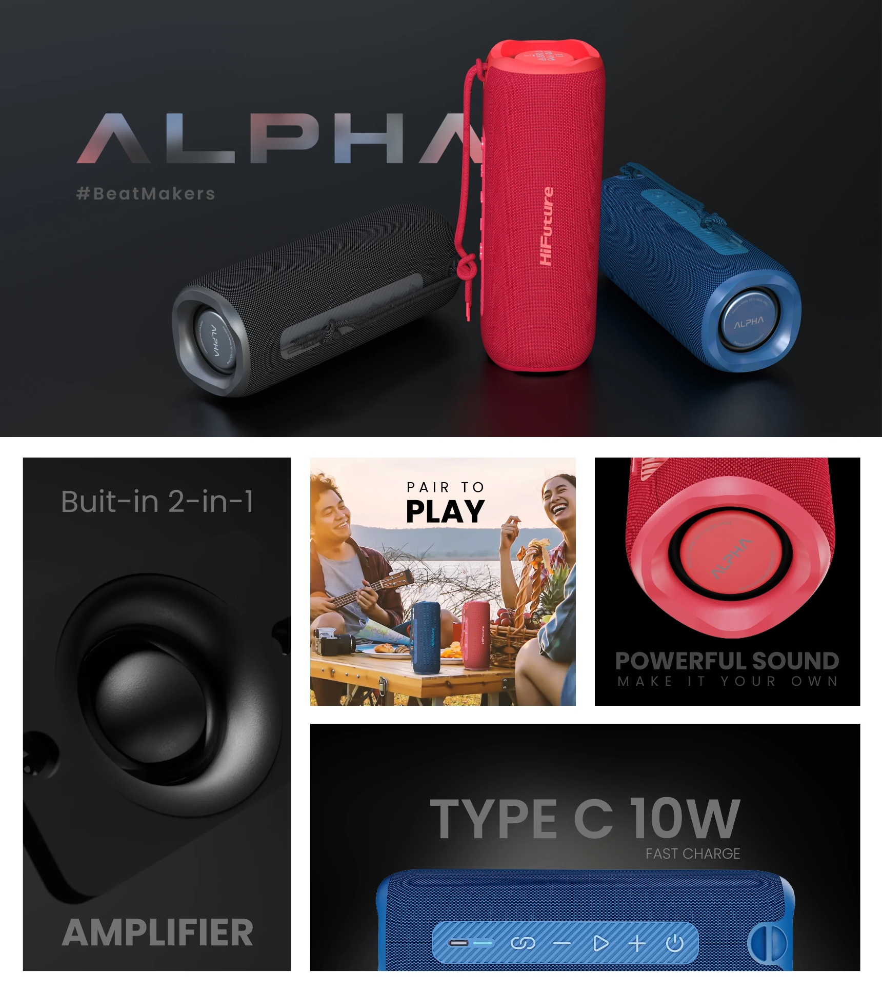🔶HiFuture Alpha Portable Bluetooth Speaker [Black, Red, Blue] ลำโพงบลูทูธ ของแท้ ประกันศูนย์ 1 ปี🔶