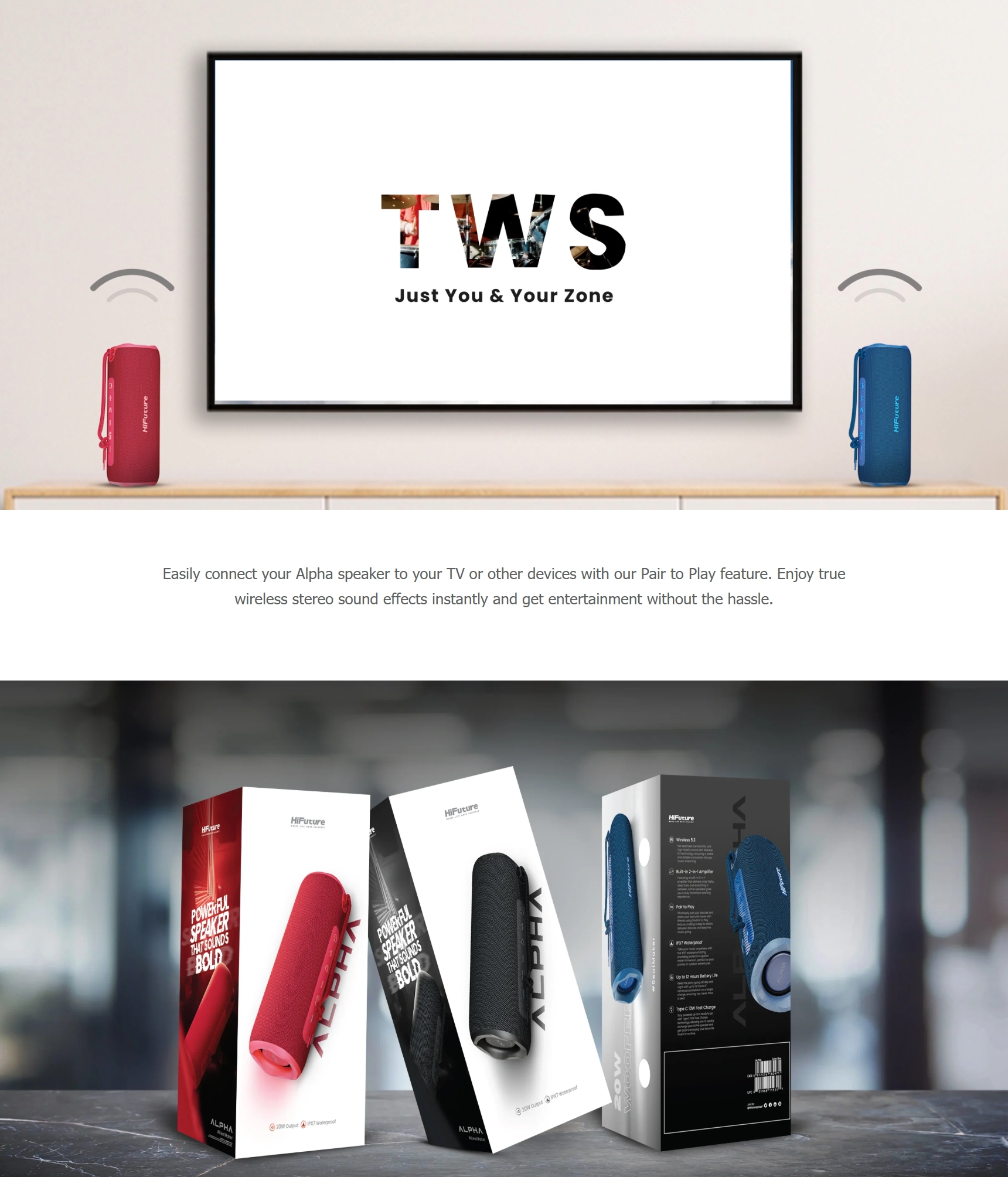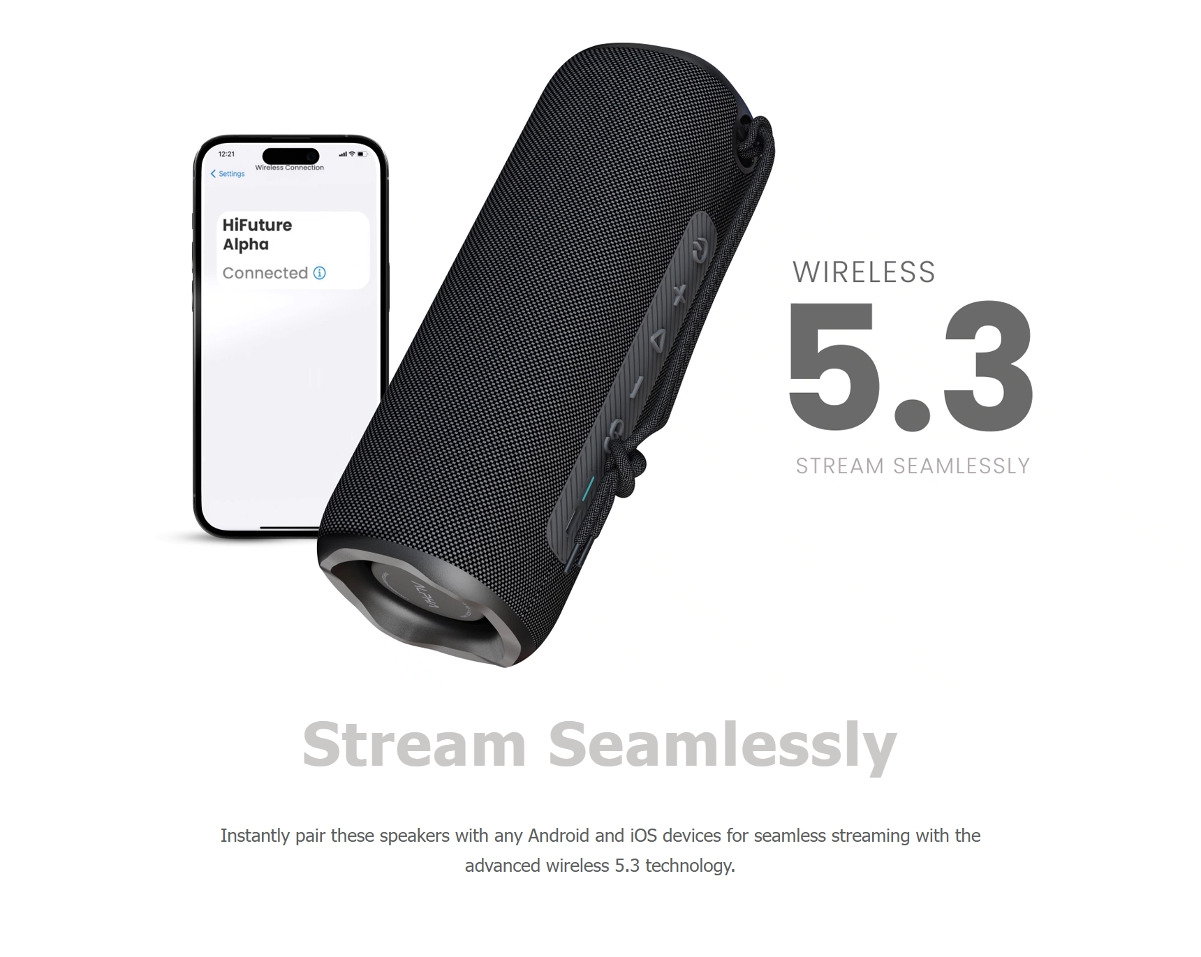 ✅ สามารถเชื่อมต่อลำโพง HiFuture ALPHA สองตัวพร้อมกันเพื่อสร้างระบบเสียงสเตอริโอได้