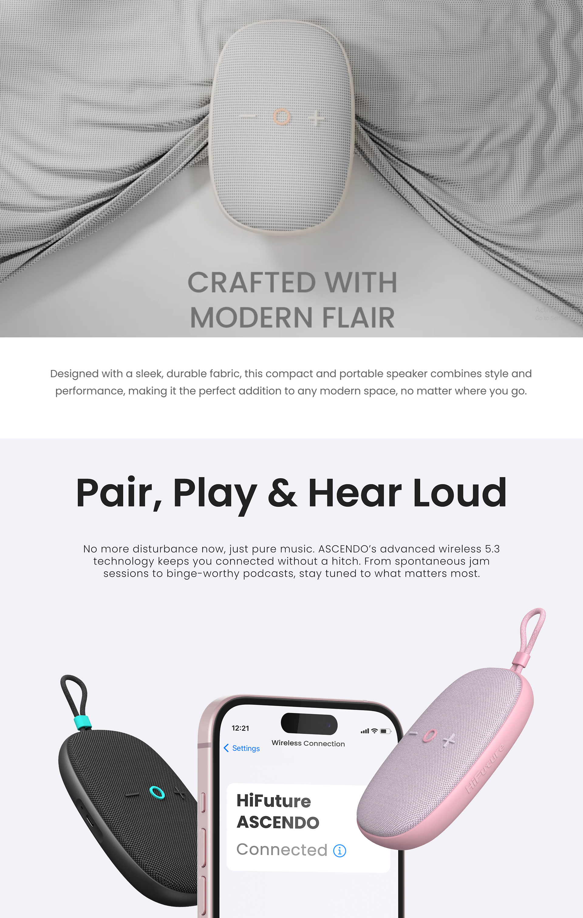✅ รองรับโหมด True Wireless Stereo (TWS): สามารถจับคู่ลำโพง HiFuture Ascendo สองตัวเข้าด้วยกันเพื่อสร้างระบบเสียงสเตอริโอได้