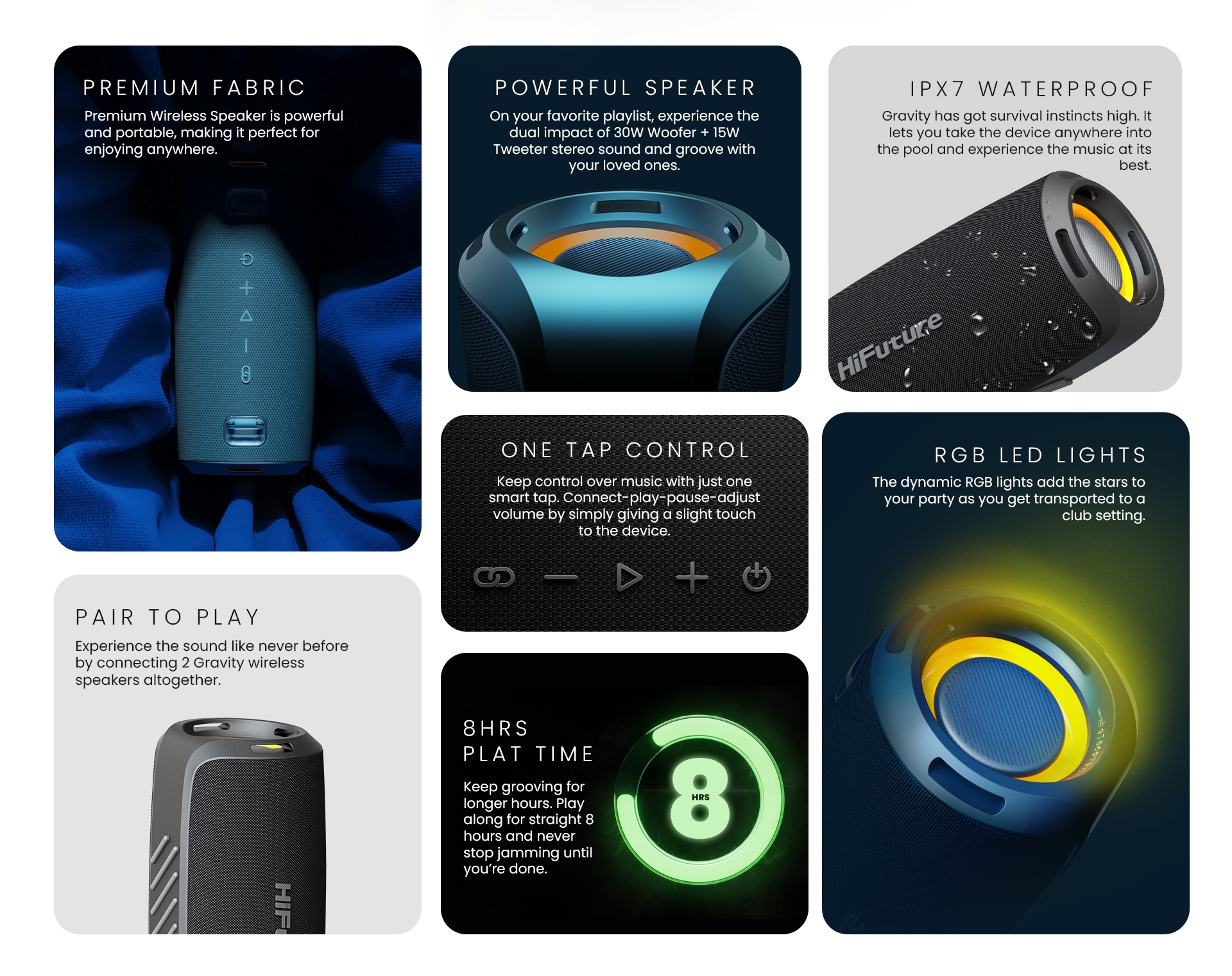 🔶HiFuture Gravity Portable Bluetooth Speaker [Black, Blue] ลำโพงบลูทูธ ของแท้ ประกันศูนย์ 1 ปี🔶