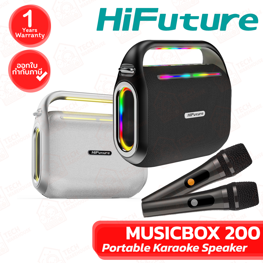 🔶HiFuture MUSICBOX 200 with 2 Microphones [Black, Silver] ลำโพงบลูทูธพร้อมไมโครโฟน ของแท้ ประกันศูนย์ 1ปี🔶