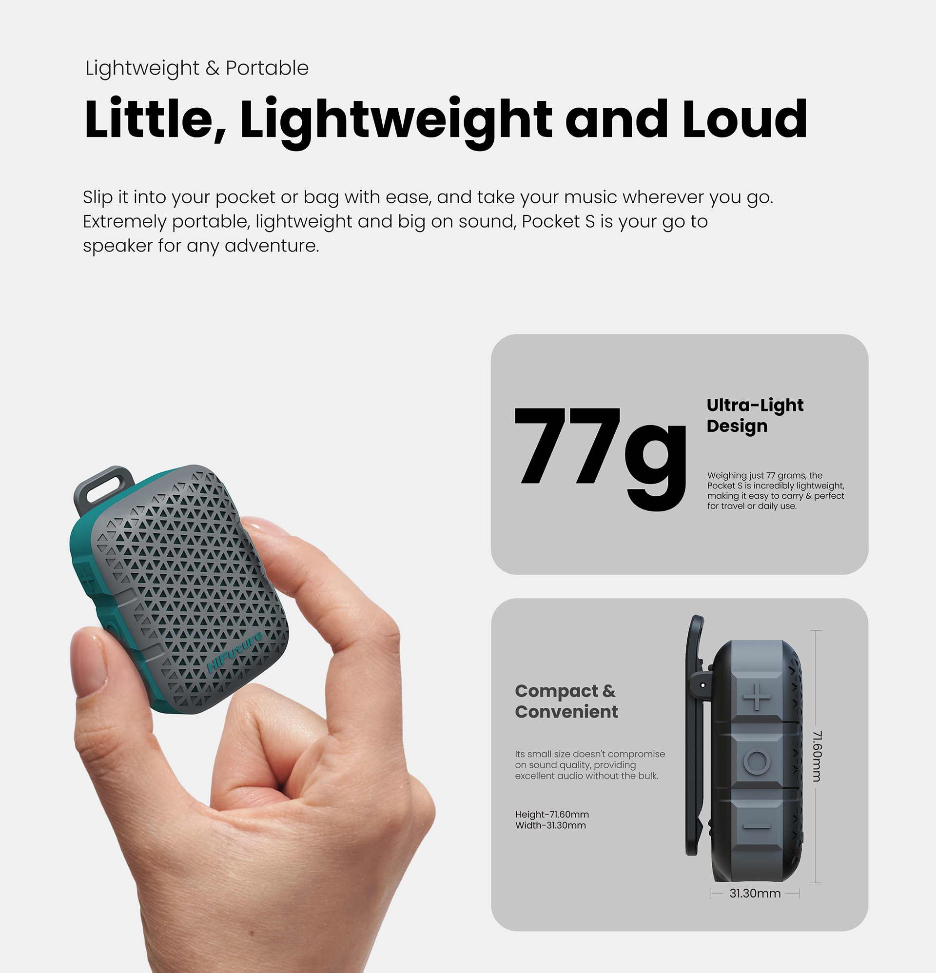🔶HiFuture Pocket S Portable Bluetooth Speaker [มัให้เลือก 4 สี] ลำโพงบลูทูธแบบพกพา ของแท้ ประกันศูนย์ 1ปี🔶